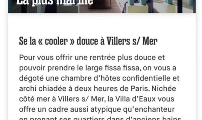 Découvrez les articles de presse concernant la Villa d’Eaux, généralement décrite comme un lieu exceptionnel et atypique par les journalistes. Nous sommes fiers et reconnaissants que notre établissement soit ainsi plébiscité.